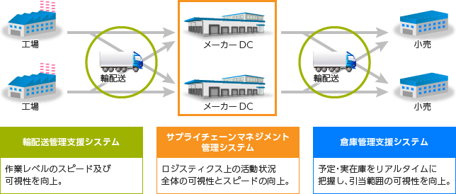 輸送管理支援、サプライチェーンイベント管理、倉庫管理などについて、最適なツールを選び、ロジスティクスモデルに適合したシステムの設計。開発・導入をお手伝いいたします。